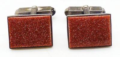 Description: Vintage sterling silver rand glittering Murano goldstone rectangular cufflinks. Sqaure toggle and hallmarked 'Silver' on the backs, test positive for sterling.