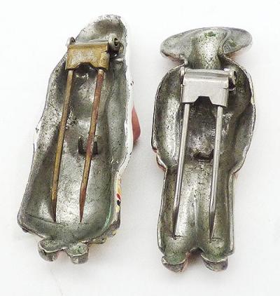 Condition: Very good, silver plating worn off of clip on the back of the woman, very very slight enamel wear in spots throughout