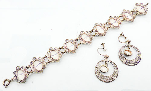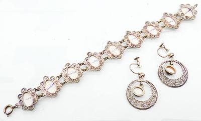 Size: Bracelet: 7 1/4" x 3/4", earrings: 1 1/4" x 1"