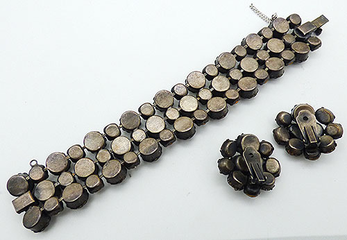 Size: Bracelet: 7 1/2" x 1 1/8", earrings: 1 1/4" dia.